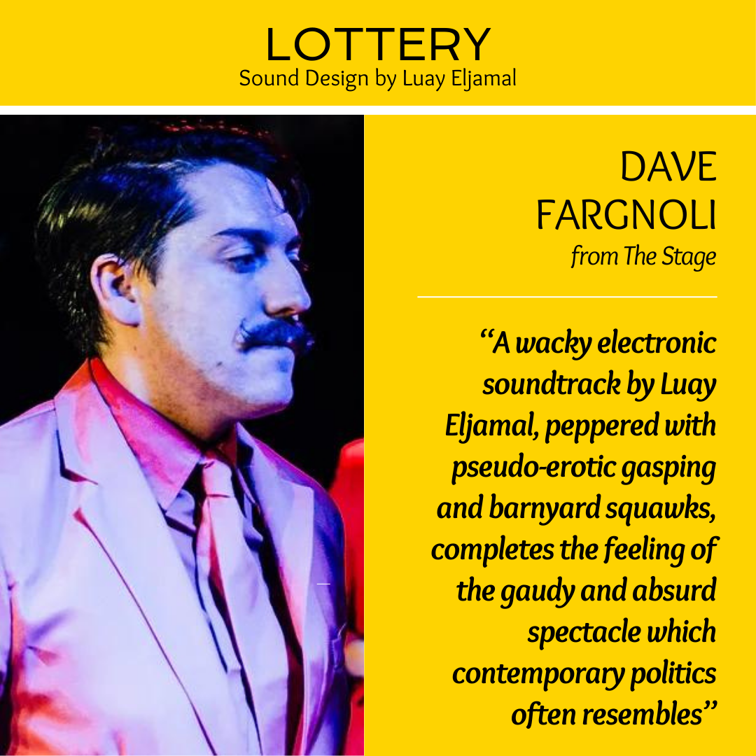 Lottery is a sharp, original, dystopian comedy. Politics has changed. A lot. The Prime Minister is now picked at random from the general public and everyone — well, pretty much everyone is in the draw. Expect sweat patches, power stances and a full-bodied moustache.